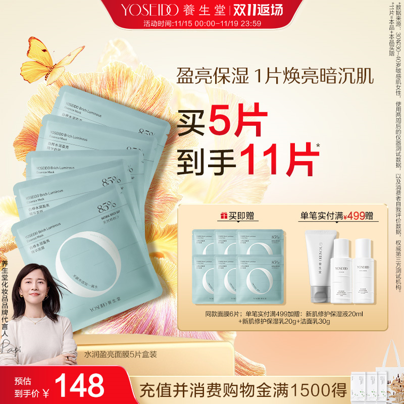 养生堂白桦水润盈亮精华面膜保湿滋润面部护肤养护肌肤温和无刺激