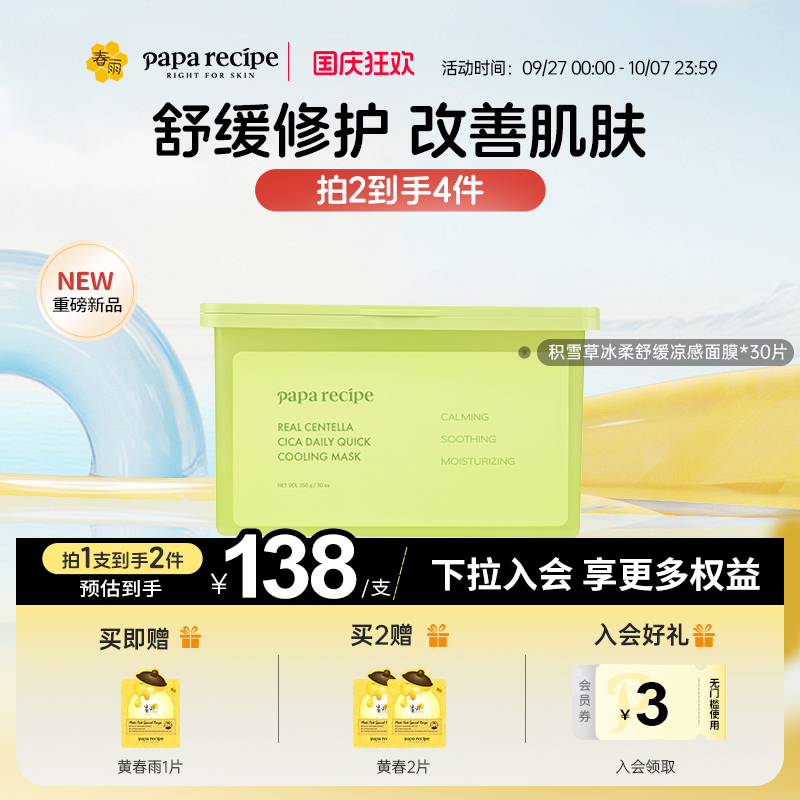 【重磅上新】paparecipe春雨积雪草面膜补水保湿舒缓维稳敏肌30片