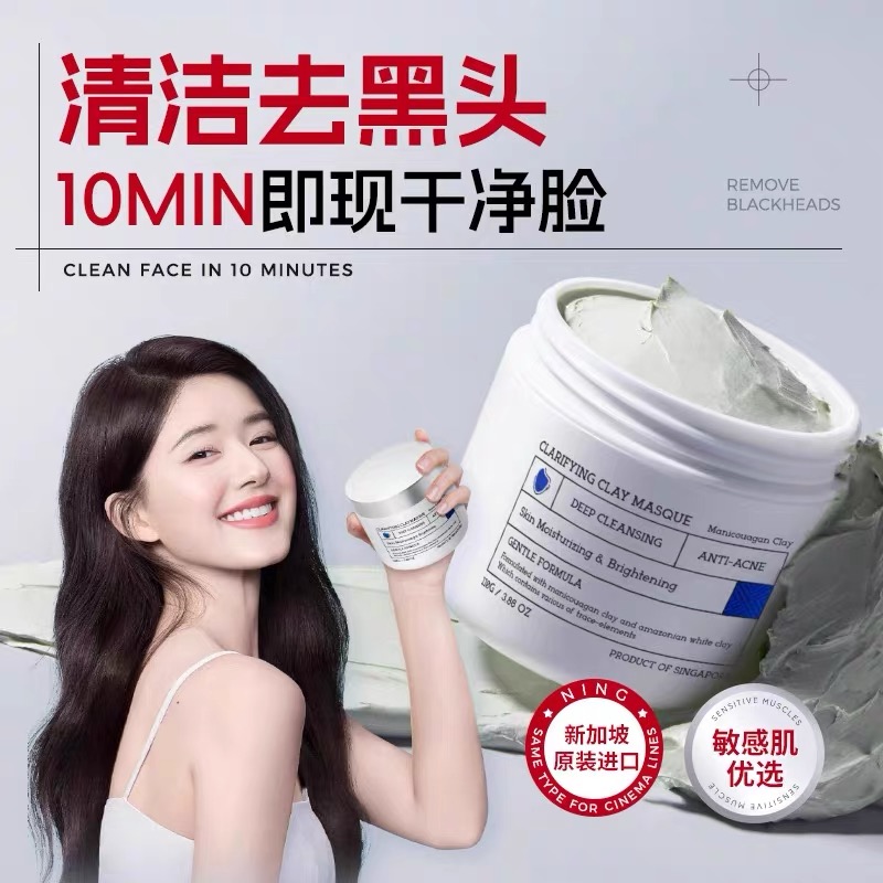 NING进口清洁泥膜去黑头粉刺闭口收缩毛孔深层补水涂抹式面膜正品