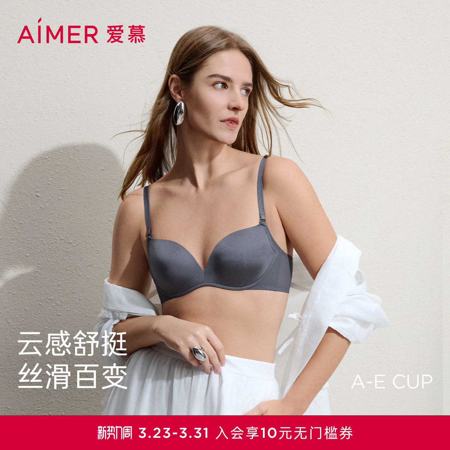 爱慕面膜文胸内衣女大胸显小薄杯/小胸聚拢软支撑透气光面文胸罩
