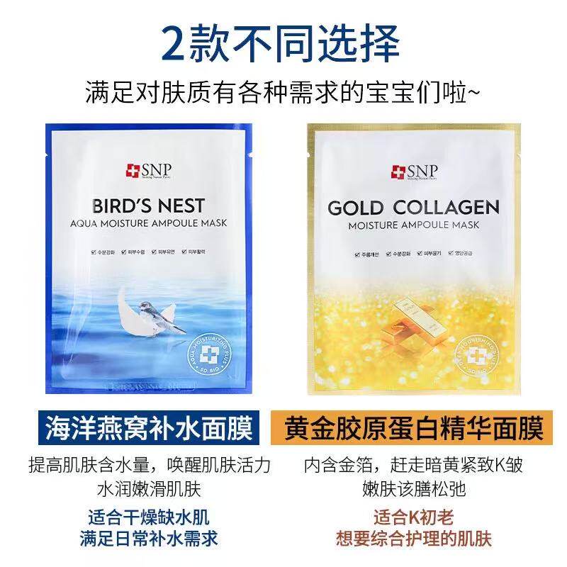韩国进口SNP海洋燕窝水库面膜黄金胶元蛋白10片补水保湿提升紧至