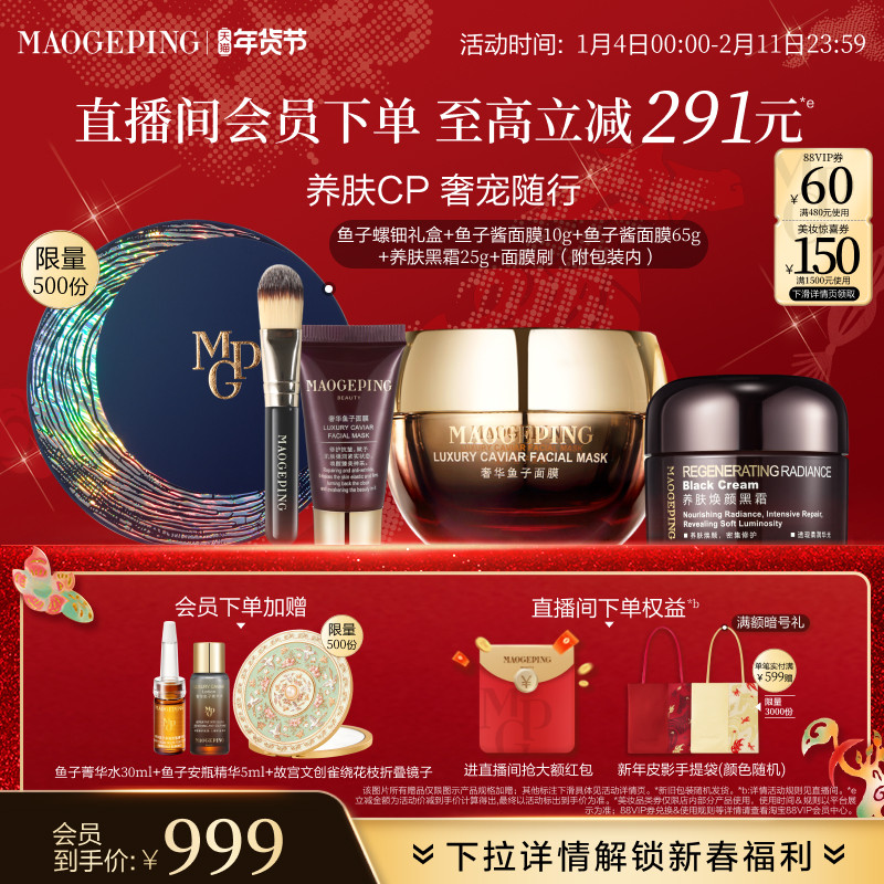 【新年礼物】毛戈平鱼子酱面膜黑霜护肤套装抗皱紧致保湿修护面霜
