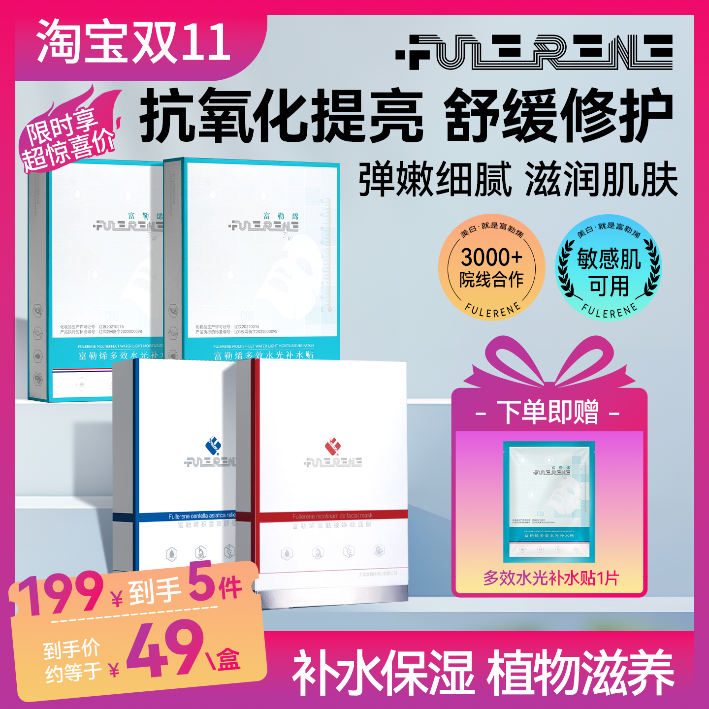 富勒烯补水面膜套富勒烯保湿补水舒缓面膜套盒