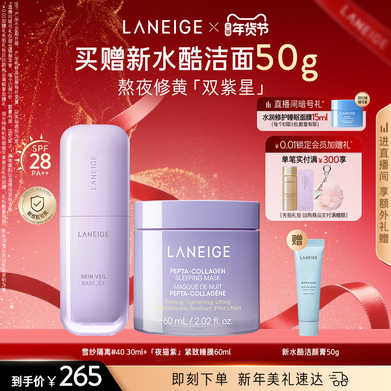【新年礼物】兰芝雪纱隔离妆前乳面膜唇膜洁面气垫套装组合优惠