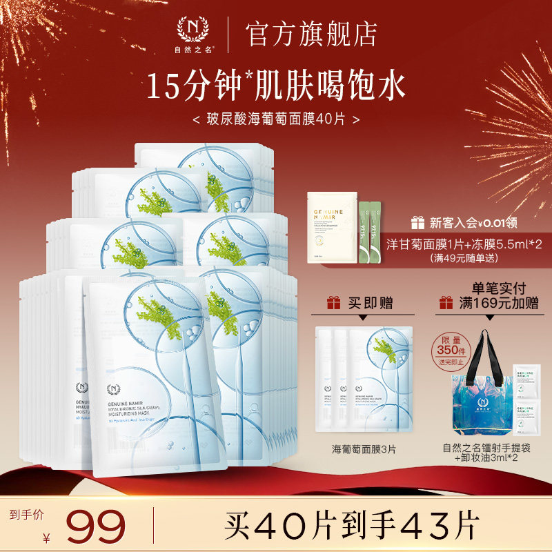 自然之名玻尿酸海葡萄面膜盈润保湿补水男女护肤贴片面膜正品官方