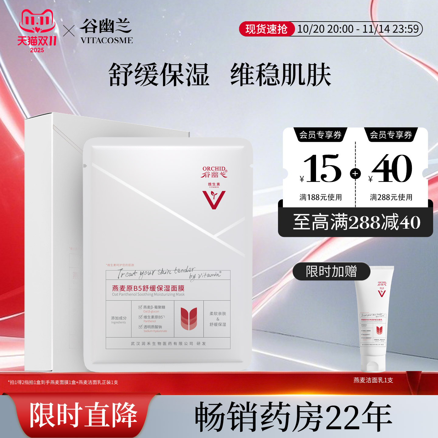 谷幽兰燕麦维生素原B5舒缓保湿深层补水急救面膜贴男女5片整盒装