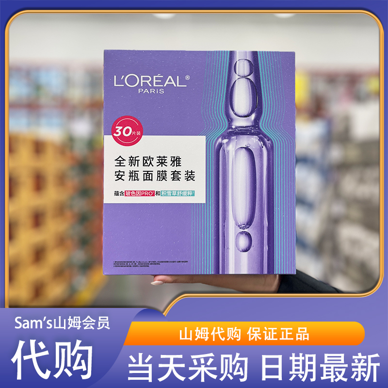 山姆国内代购欧莱雅多效修护安瓶鲜注面膜33g*30片修护舒缓水润肌
