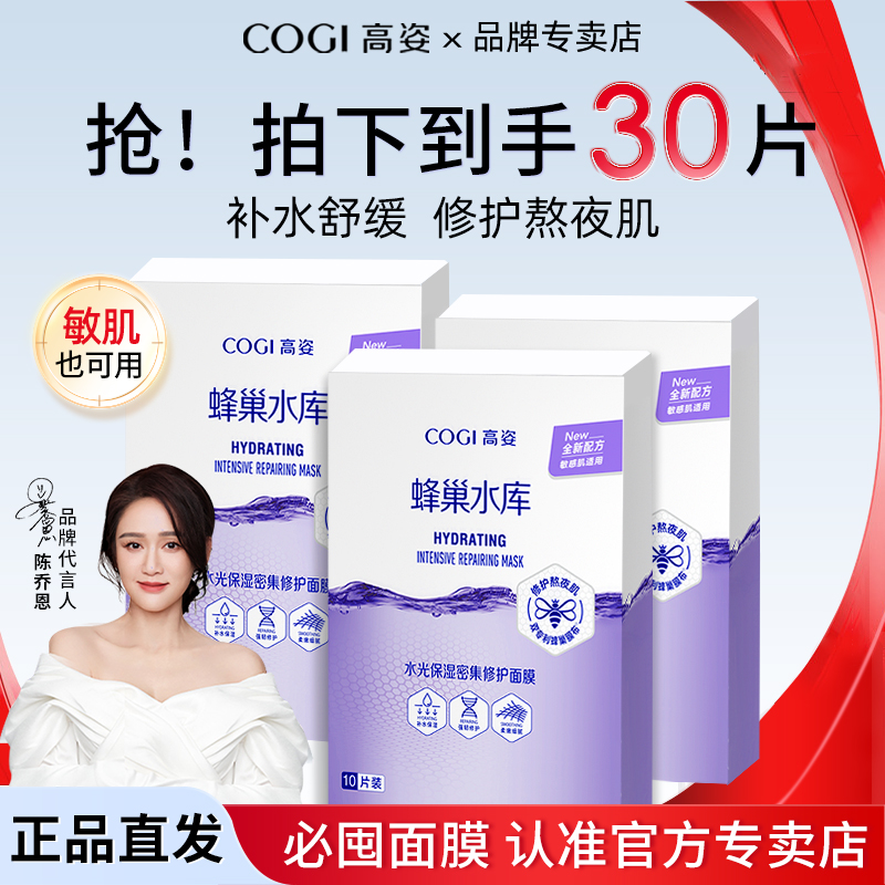 【3盒装】高姿面膜蜂巢水库补水保湿紫色熬夜修护高资官方正品女T