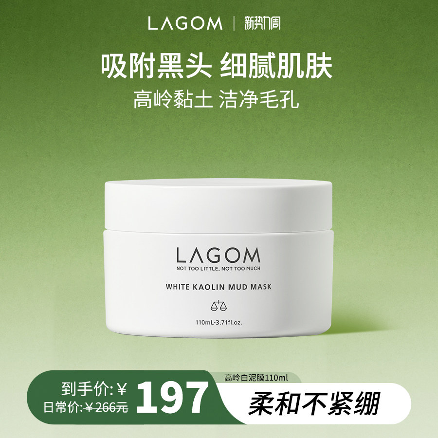 LAGOM高岭白泥清洁面膜三酸柔嫩舒缓肌肤收缩毛孔去黑头角质110ML