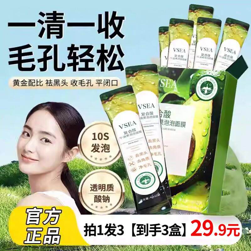 VSEA牛油果泡泡面膜积雪草去黑头粉刺闭口收缩毛孔深层清洁涂抹式