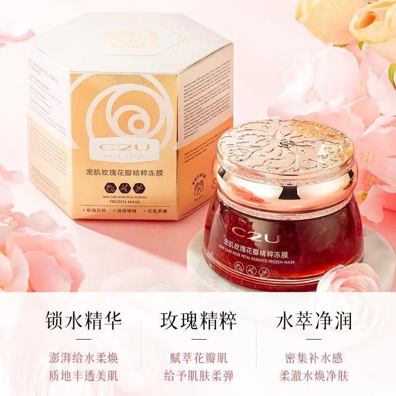 C2U宠肌玫瑰花瓣送膜补水锁水舒缓肌和清洁面膜清透啫喱流沙