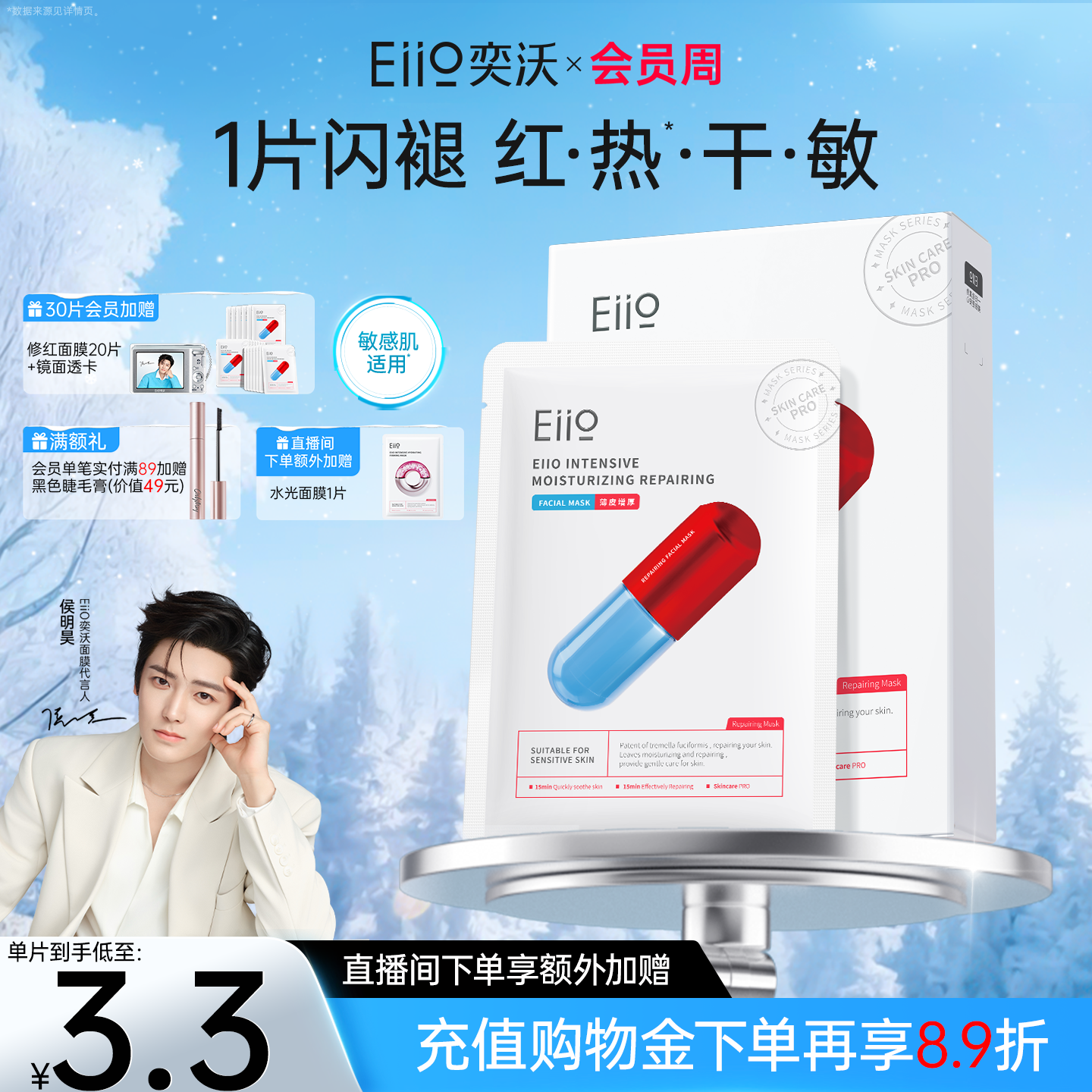 eiio奕沃修护面膜补水保湿修红舒缓敏肌修复减少泛红贴片面膜ello