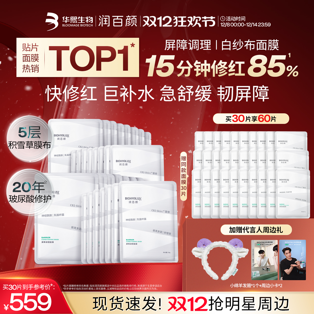 润百颜华熙生物屏障调理白纱布2.0面膜20片补水舒缓晒后修护男女礼物