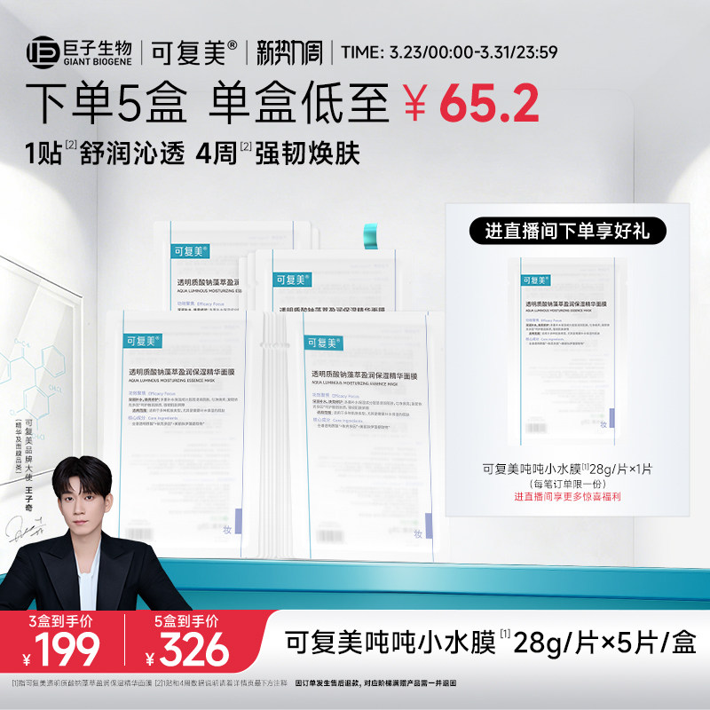 【王子奇同款】可复美吨吨小水膜补水保湿修护敏感肌面膜5片/盒