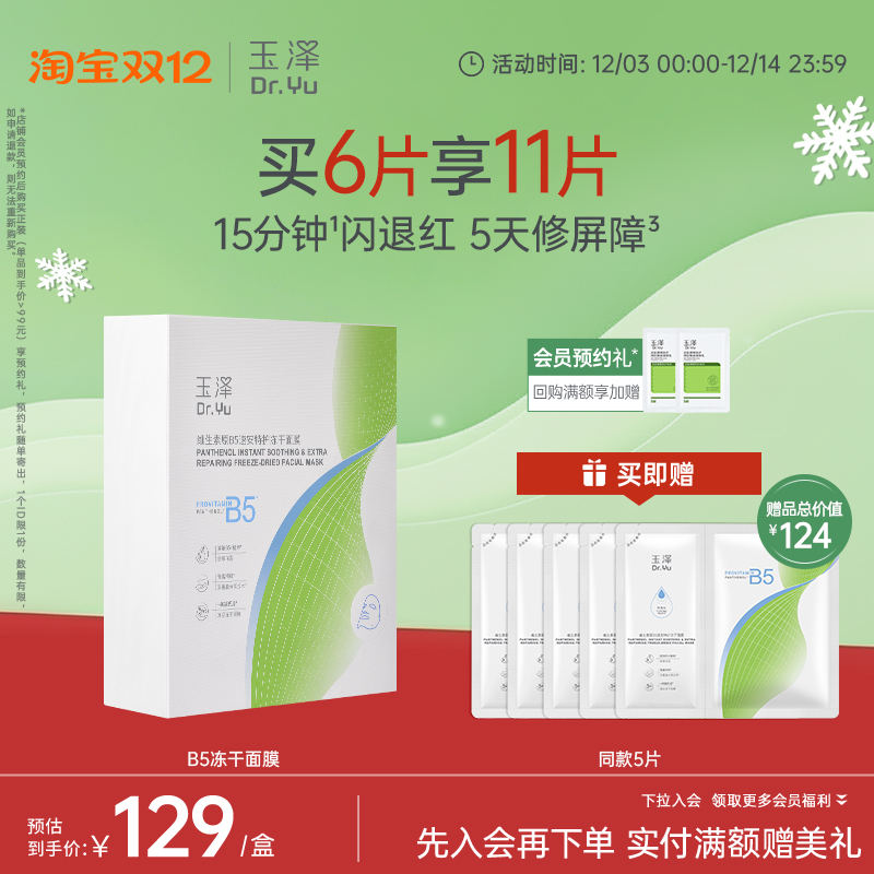 玉泽B5冻干面膜退红晒后舒缓修护屏障保湿缓解干燥面膜