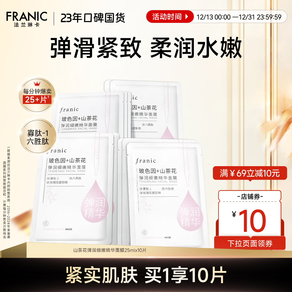 法兰琳卡玻色因山茶花弹润细嫩精华面膜女补水保湿紧致出游季 弹润细嫩面膜10片