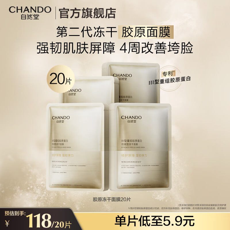 自然堂冻干面膜 修护抗皱紧致Ⅲ型重组胶原蛋白敏感肌保湿护肤品女礼物 胶原蛋白冻干面膜 20片 【圣诞节礼物】