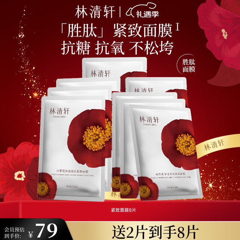 林清轩山茶花保湿紧致面膜6片1盒 补水提亮抗皱胜肽 圣诞礼物