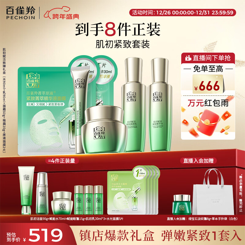 百雀羚(PECHOIN)套装礼盒肌初致臻水乳霜眼霜面膜抗皱紧致品质国货新年礼物
