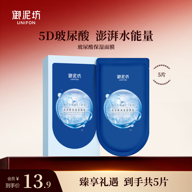 御泥坊5D玻尿酸保湿面膜 补水保湿 学生党快速补水面膜 节日礼物 玻尿酸面膜5片