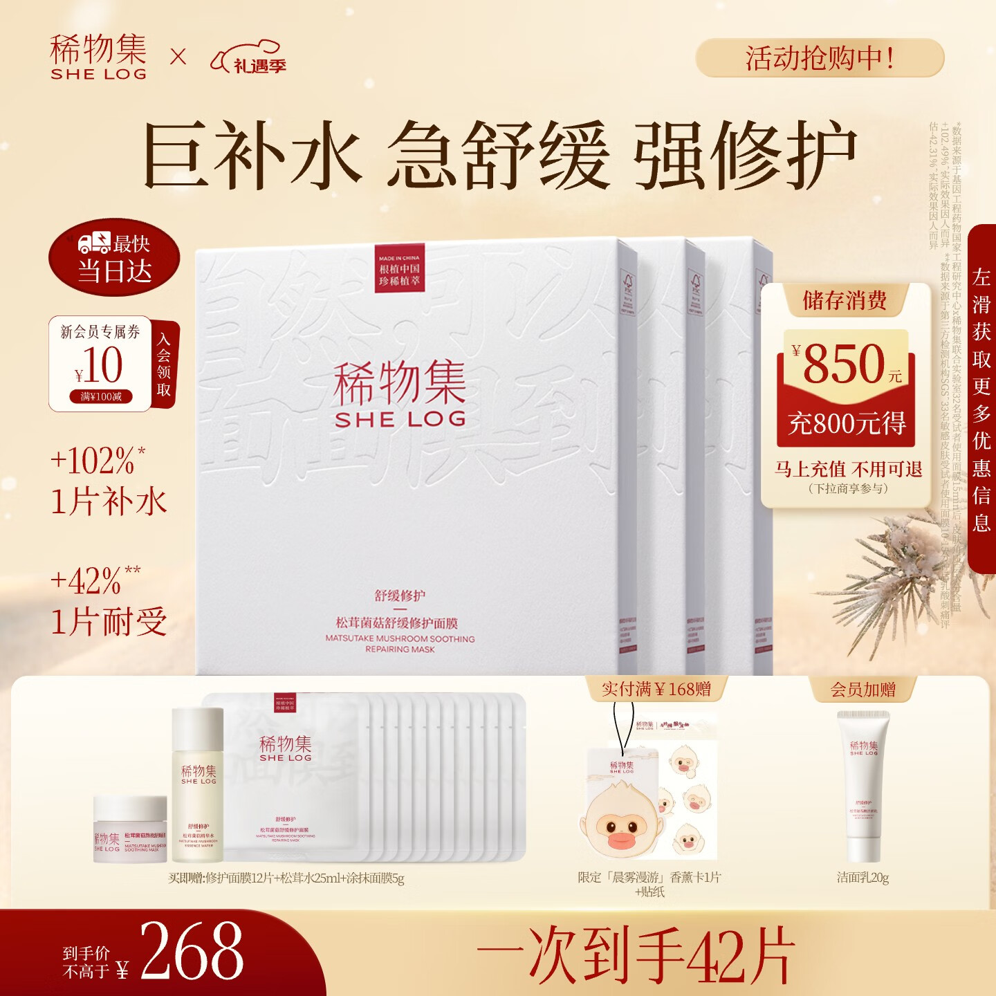 稀物集松茸菌菇舒缓修护面膜30片补水保湿温和护肤品圣诞礼物