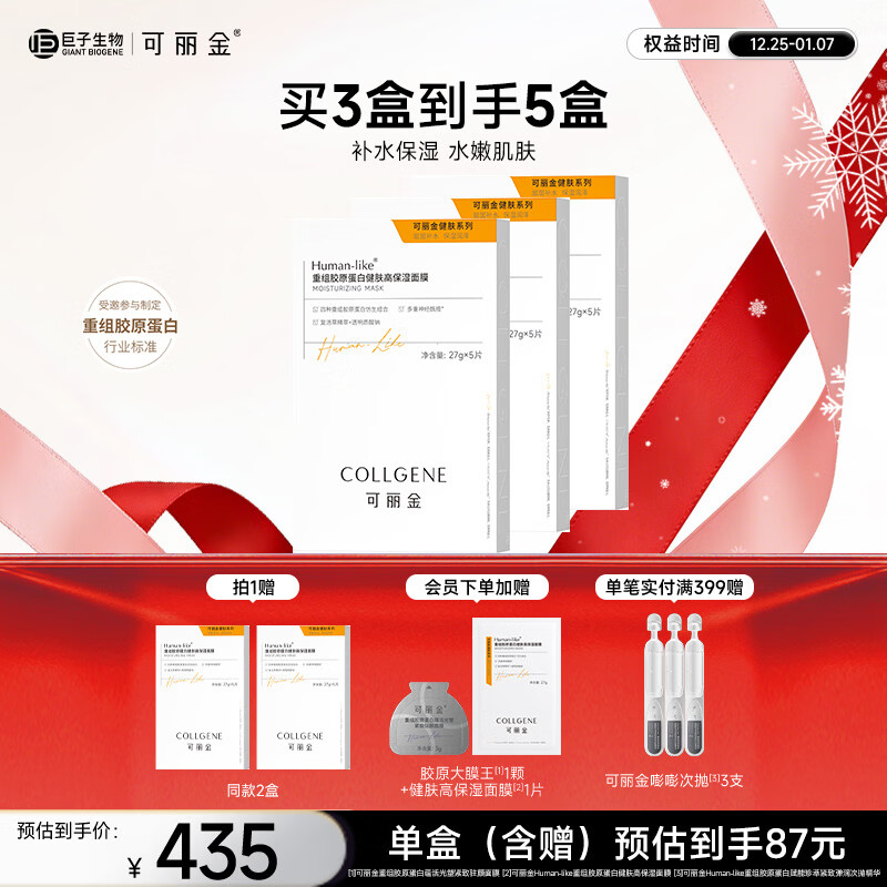 可丽金重组胶原蛋白健肤高保湿面膜补水实用【圣诞节送女朋友护肤礼物】 可丽金高保湿补水面膜【三盒装】