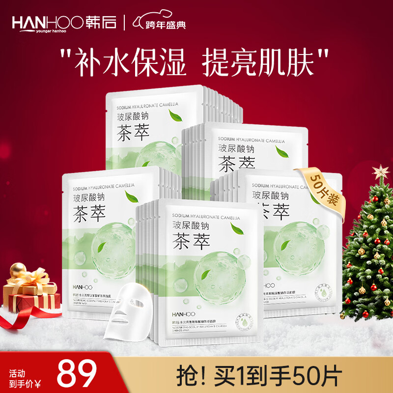 韩后(Hanhoo)水光柔嫩玻尿酸钠茶萃面膜 补水保湿提亮肤色护肤品面膜男女可用 茶萃面膜50片装