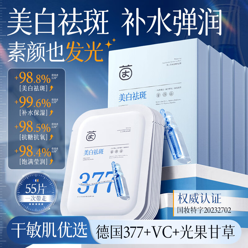 茵倩377美白面膜补水保湿淡斑去黄气提亮暗沉紧致抗皱纹抗老面膜正品 【加强美白】持证美白/祛斑共55片