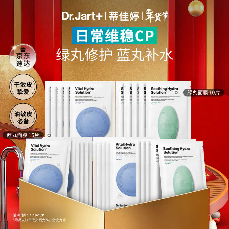 蒂佳婷(Dr.Jart)【蓝绿丸1.0】经典蓝绿丸面膜(3蓝2绿)25片补水保湿修护焕亮 礼物