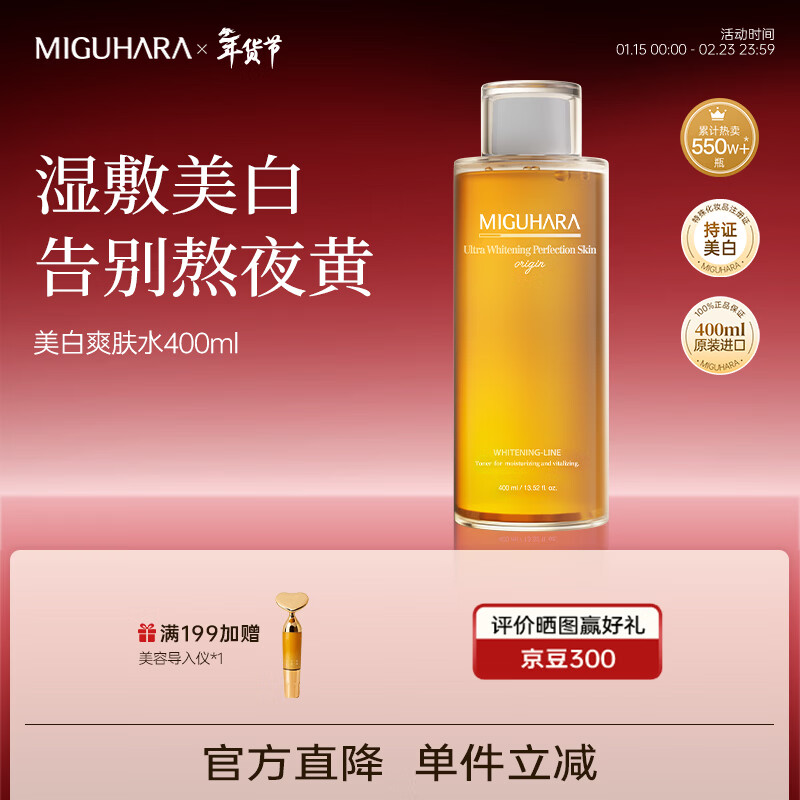MIGUHARA咪咕哈啦湿敷水面霜面膜精华水护肤套装美白提亮补水保湿新年礼物 美白湿敷水400ml