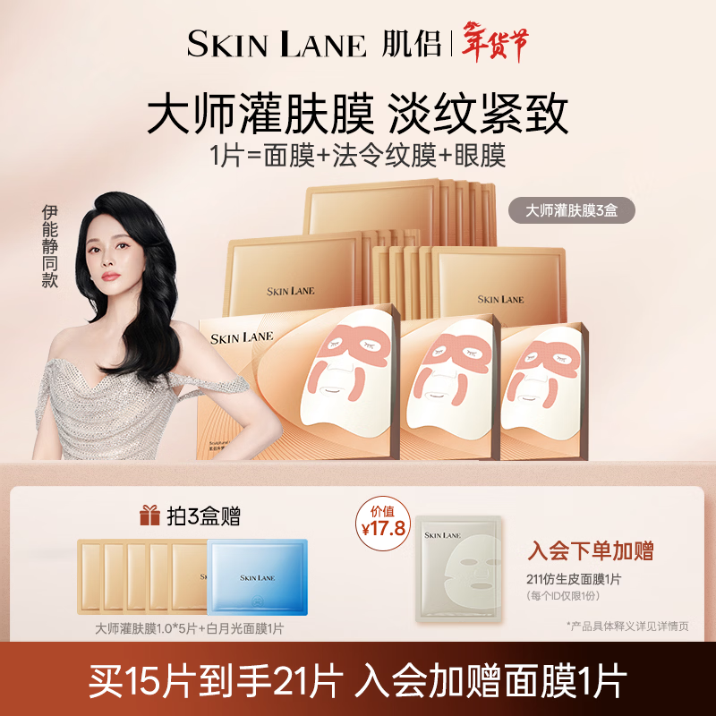 肌侣(skin lane)大师面膜抗皱紧致胶原蛋白灌注敏肌保湿3盒情人节礼物新年送女友