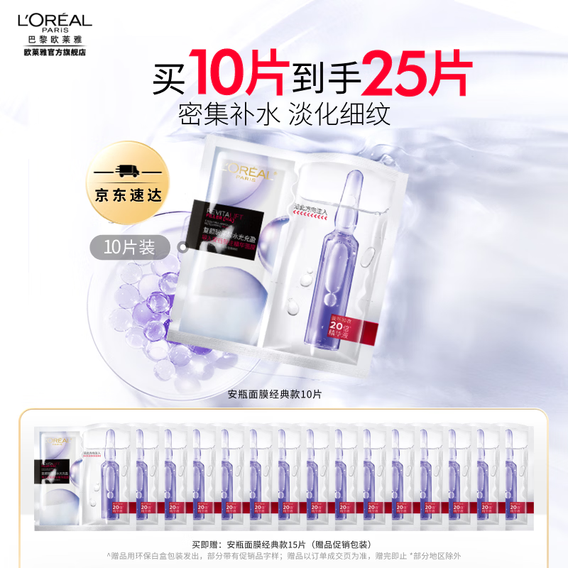欧莱雅安瓶面膜 玻尿酸补水保湿抗皱 护肤品 新年礼物送老婆送妈妈 【买10片到手25片】安瓶面膜10片装