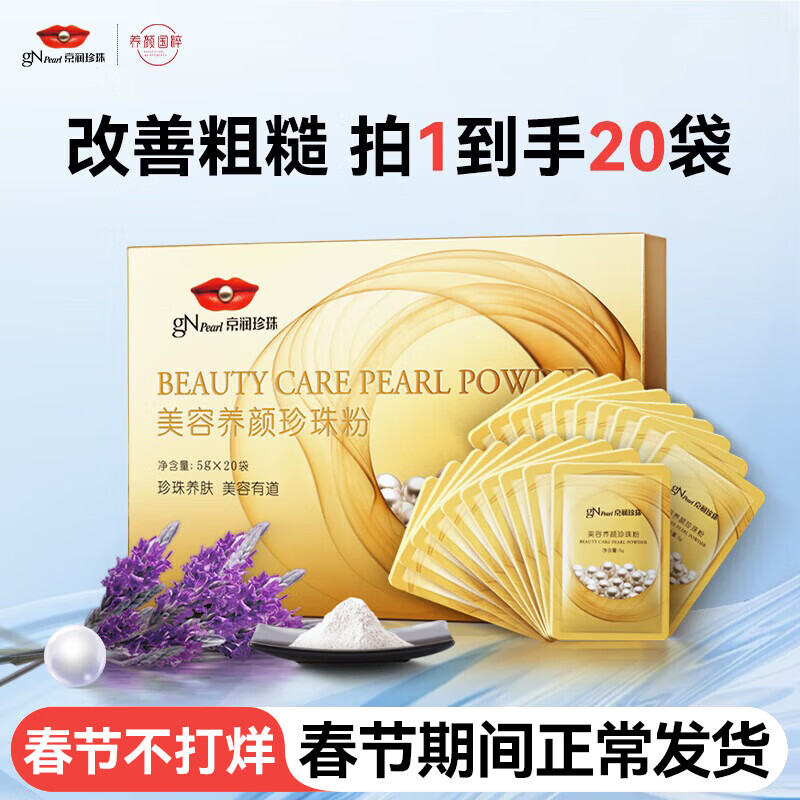 京润珍珠(gNPearl)珍珠粉提亮肤色 补水保湿面膜男女士清洁泥膜 美容养颜珍珠粉5g*20袋