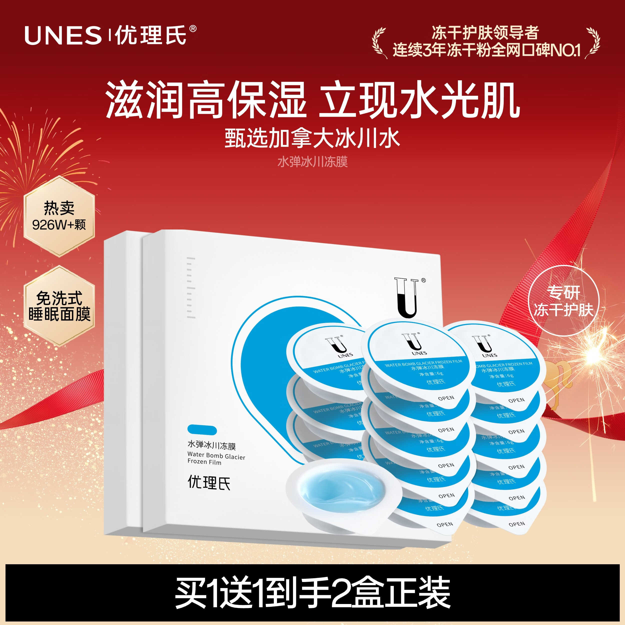 优理氏 水弹冰川冻膜涂抹式免洗睡眠面膜清洁补水保湿收缩毛孔晒后修护 84g 到手2盒共28颗