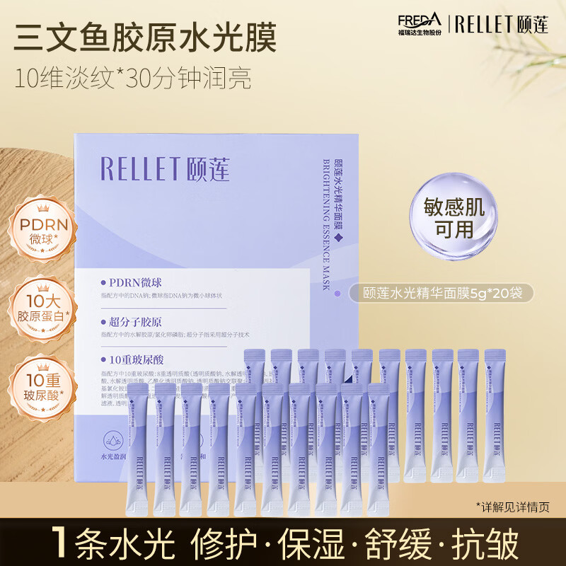 颐莲(RELLET)颐莲水光精华面膜5g*20袋 撕拉面膜补水保湿女神节礼物