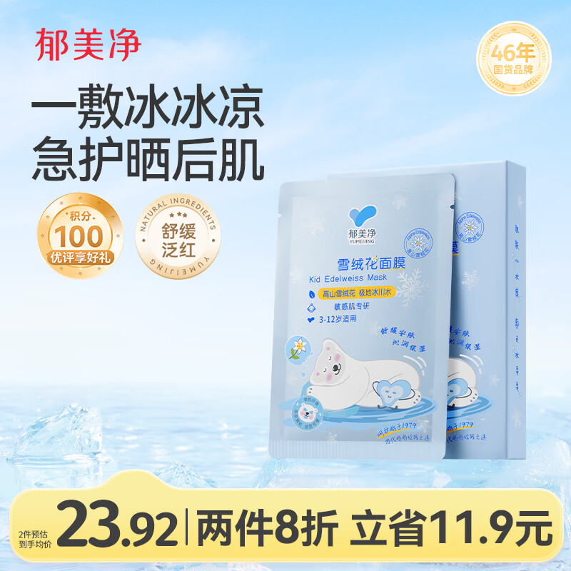 郁美净雪绒花舒缓面膜22g*5冰润保湿补水晒后急护宝宝面膜