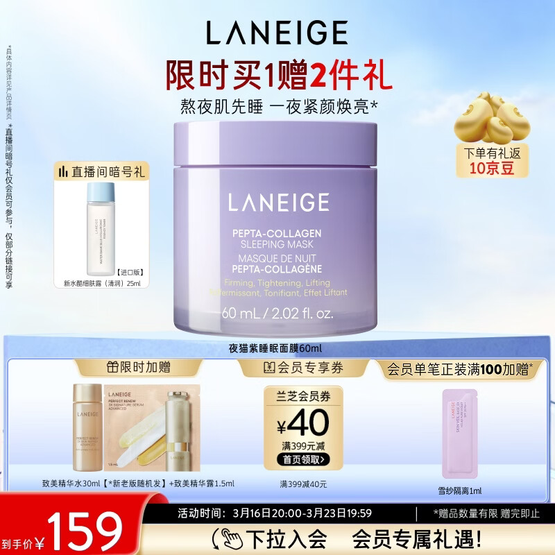 兰芝夜猫紫胶原多肽紧致睡眠面膜60ml修护保湿生日礼物送女友
