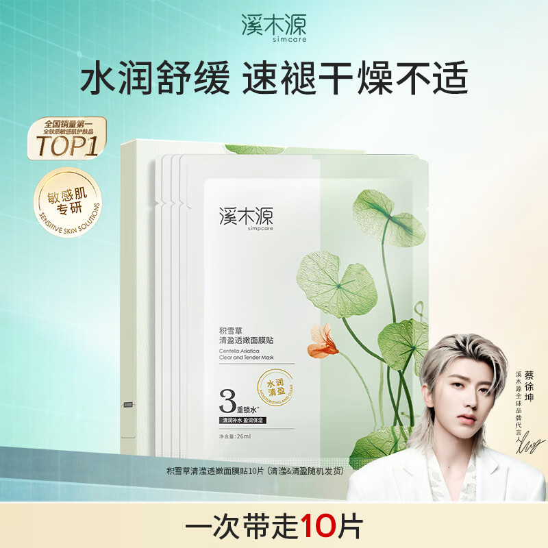 溪木源积雪草面膜补水保湿舒缓翻红维稳敏感肌修护 【清爽不闷肤】10片