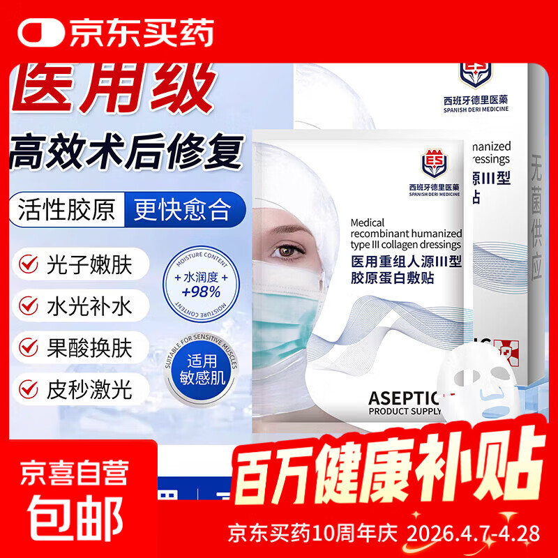 医用重组人源三型胶原蛋白敷料面膜医美水光术后敏感泛红补水保湿 【补水保湿】1盒5片