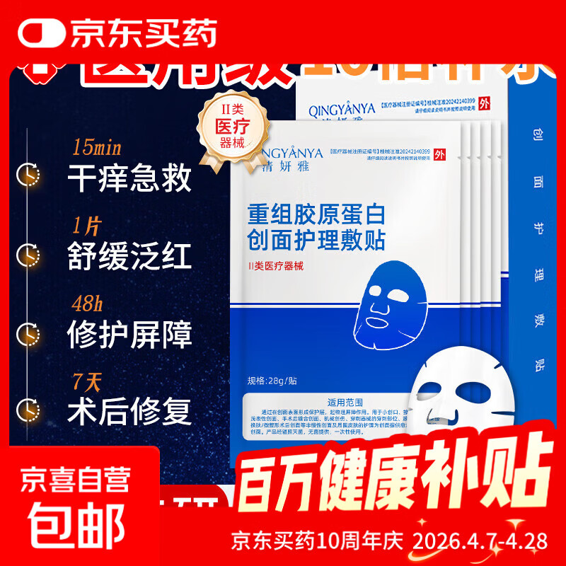 重组胶原蛋白创面面膜械字号无菌级医美术后修复补水型祛痘 3片