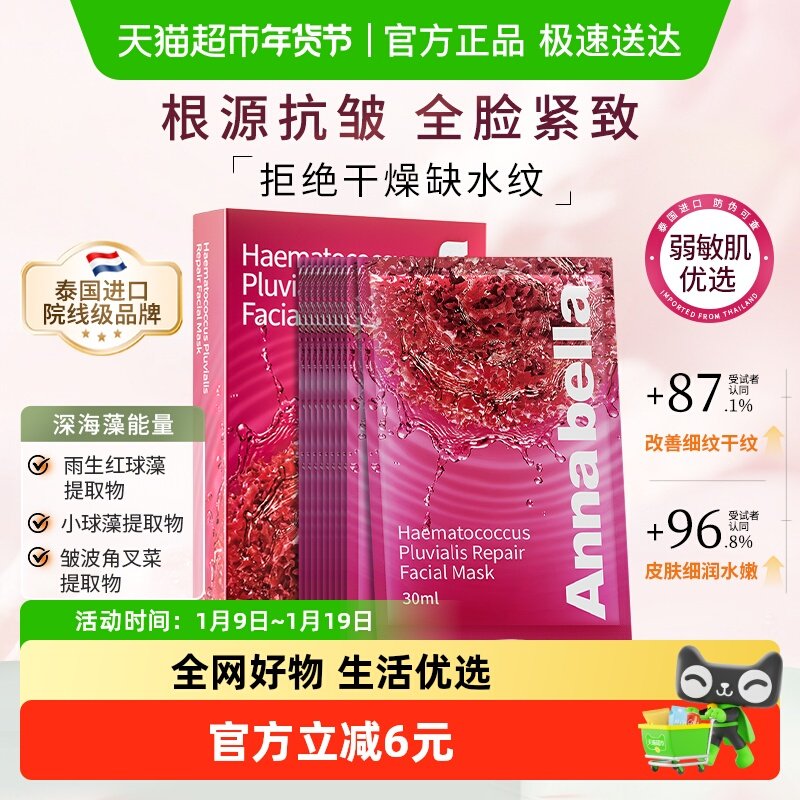 ANNABELLA安娜贝拉红球藻修护面膜补水保湿抗衰泰国进口10片装