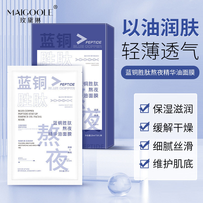 5盒8小时内发货】玫黛琳蓝铜胜肽熬夜精华油面膜轻薄服帖补水高保