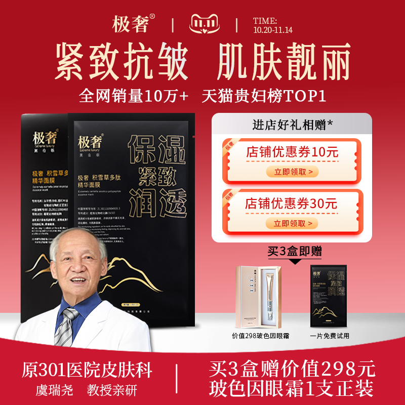 【双11抢先购】极奢抗皱紧致补水保湿润透靓颜积雪草多肽精华面膜