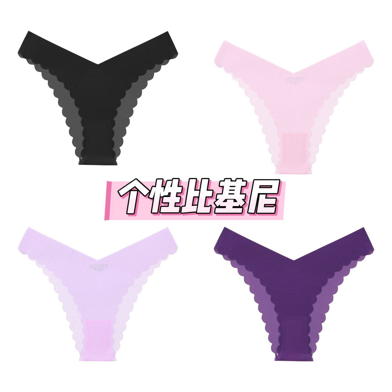 一片式无痕面膜内裤女超薄隐形纯欲波浪边大码健身瑜伽打底比基尼