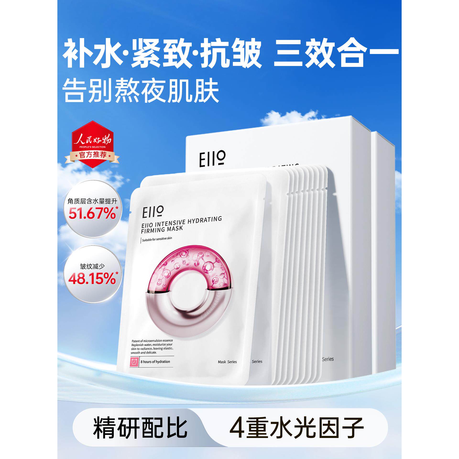 【会员周】eiio水光面膜补水抗皱紧致嘭弹保湿缓解敏肌面膜ello