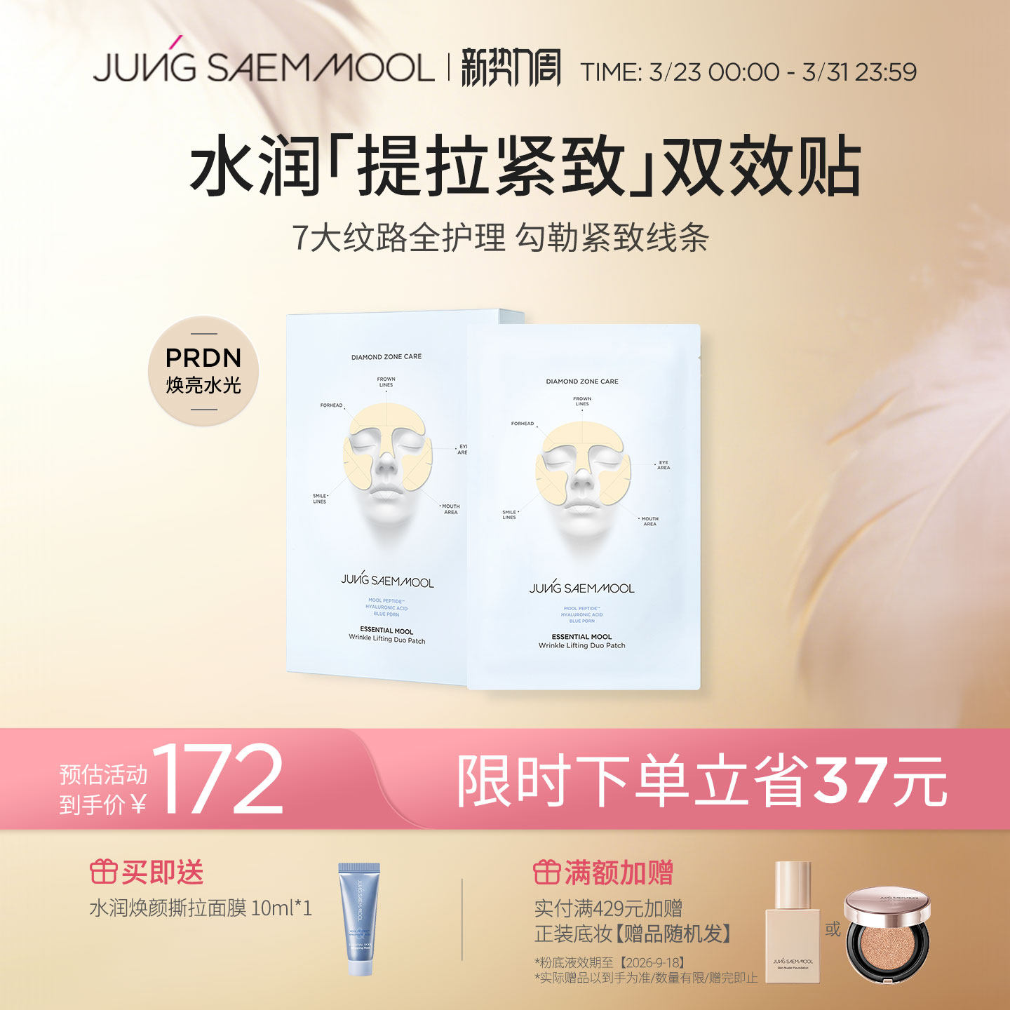 郑瑄茉PDRN精华水润提拉紧致双效贴水光面膜深层补水保湿5片/盒