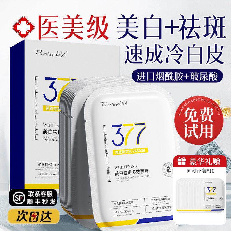 377美白面膜保湿提亮紧致补水去黄气暗沉淡斑女男士专用官方正品