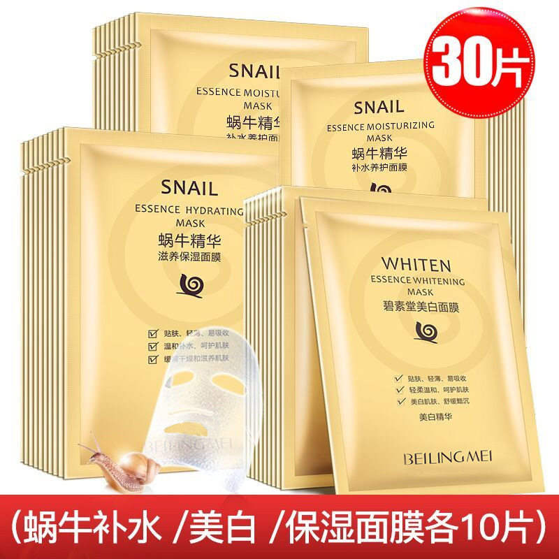 贝玲美碧素堂蜗牛滋养保湿补水面膜美白提亮晒后修复舒缓片装面膜