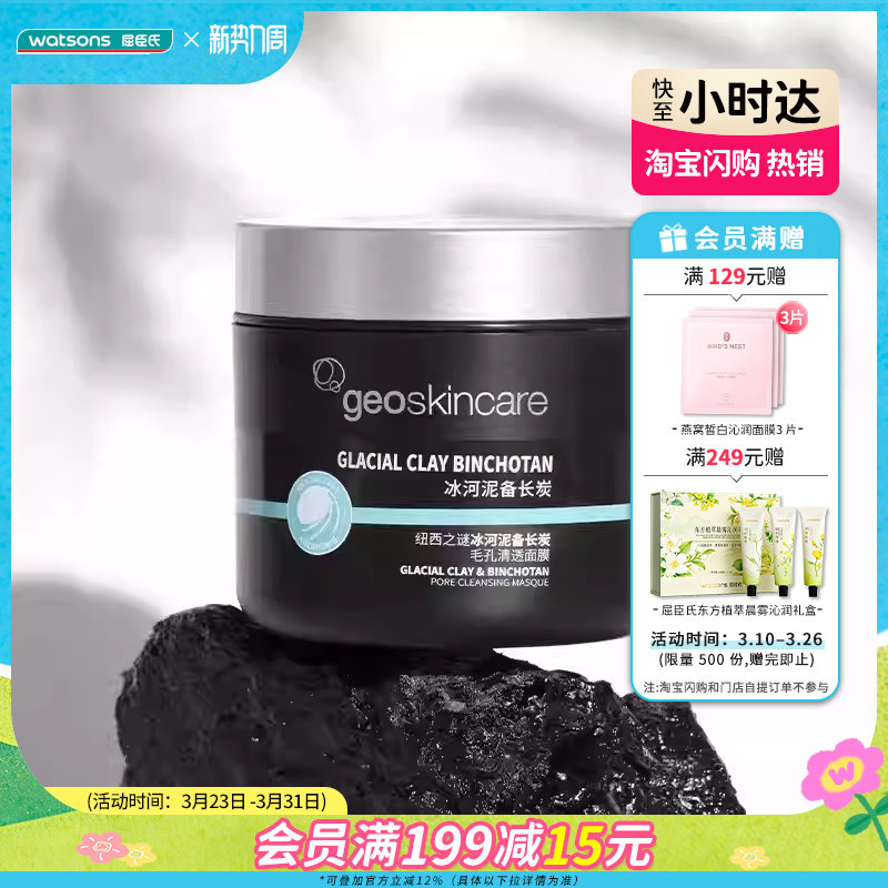 屈臣氏纽西之谜冰河泥备长炭毛孔清透面膜100ml