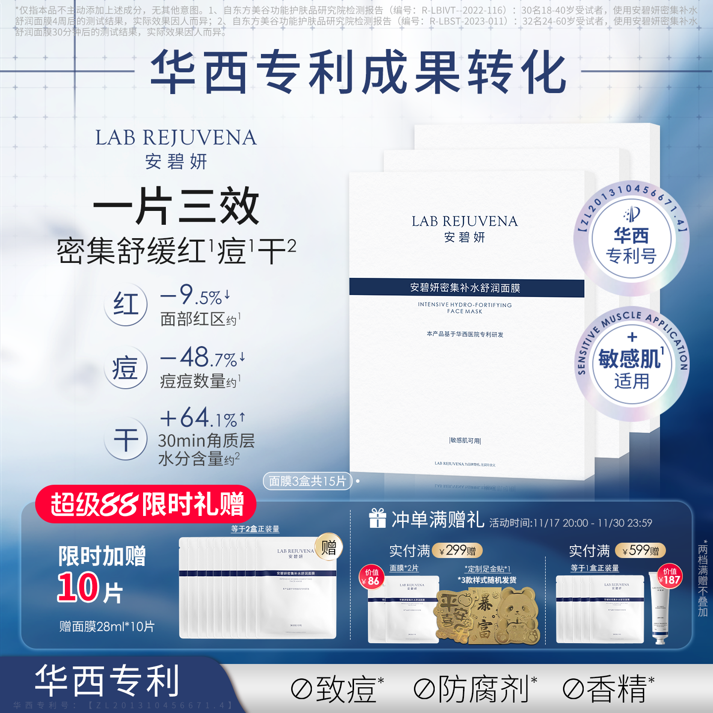 【蜂狂双11】颐莲玻尿酸精华面膜贴片补水保湿清爽细
